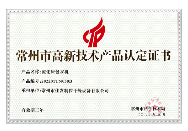 高新技術產品認定證書