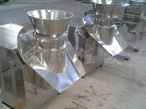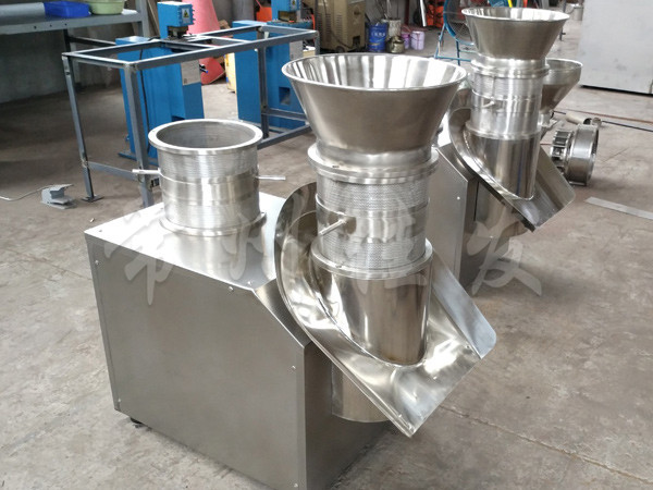 This machine uses a set of rotating grinding knives to inject the wet material made from the previous process into the stainless steel sieve barrel of the ring grinding knife, thereby producing cylindrical wet particles for shot blasting in the next process. This device can obtain particles of different sizes by replacing the stainless steel sieve cylinder.